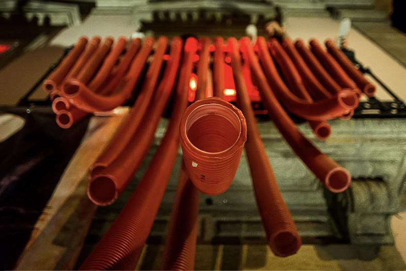 O caos é organizado em metros e metros de tubo Heliflex Atoxico Premium de 70mm afinado numa escala pentatónica.