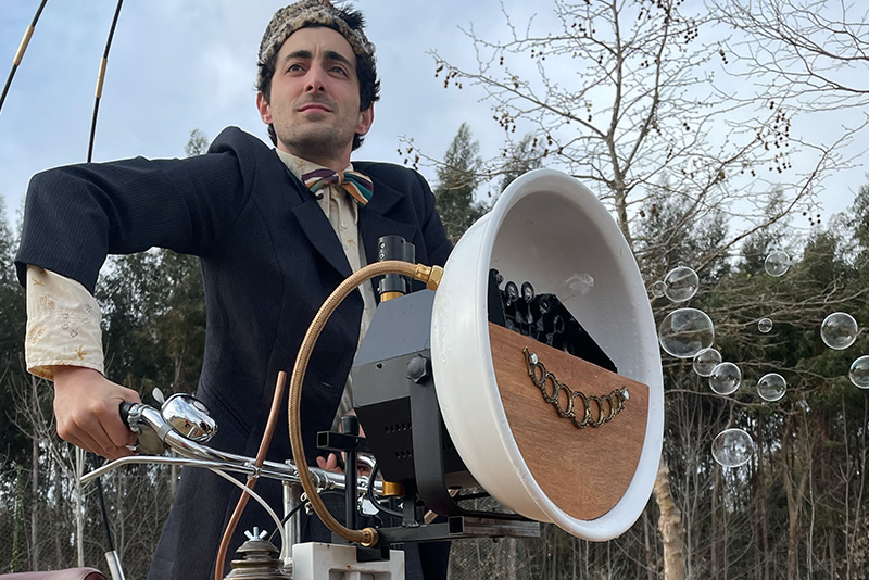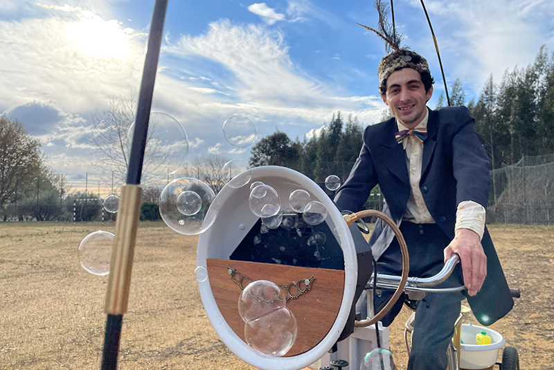 Uma animação de rua deambulante que recria o imaginário e a memória dos vendedores ambulantes que usavam a bicicleta como meio de transporte e como local de venda.